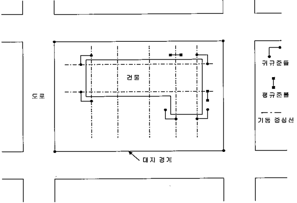 기준점(bench mark)은 모든 공사 높이의 기준이 되는 것으로 공사 착수 전에 설정하여 공사종료 시까지 존치시켜야 하는 중요한 것이다. 기준점의 위치, 기타 사항은 따로 기록하여 두고, 필요에 따라 보조 기준점을 1~2개소 설치한다. 기준점은 이동 및 변형 등이 없게 그 주위를 감싸는 등 보호조치를 하여하 한다.
